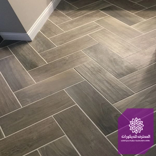 | شكل متعرج | تُركب الألواح بزاوية 90 درجة مشكلة شكل عظم السمكة أو حرف V متكرر يتطلب دقة عالية في القص والتنفيذ | غرف المعيشة الكبيرة و الصالات الرسمية حيث يضيف فخامة كلاسيكية |